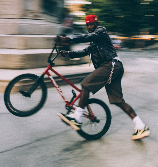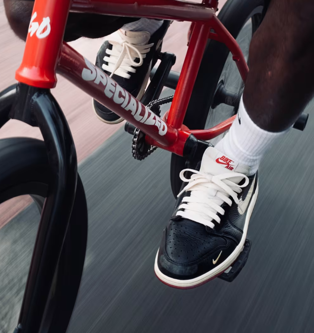 A BMX icon and creative force, Nigel brings his lived experience straight to the design. Distressed details on the toe, heel, and lateral panels, paired with a weathered outsole, reflect hours spent riding, building, and moving forward. The removed Swoosh and Wings logo, leaving only outlines, speak to evolution and the pursuit of mastery.
