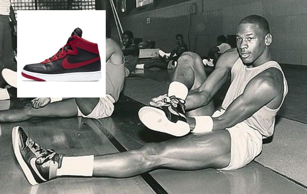 The legendary Chuck Kuhn photographed the first product shoot for the Air Jordan apparel and footwear collection which included 2 prototypes: The Air Jordan 1 Black toe and Air Jordan 1 Black/Red aka the BRED.