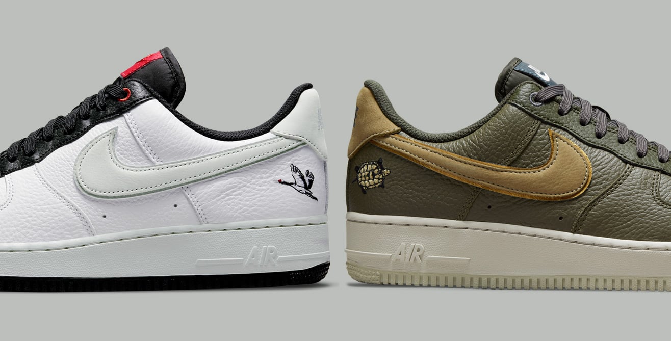 Set to release in two colourways at LEMKUS is the new Air Force 1 inspired by the Japanese saying “tsuru wa sennen, kame wa mannen,”. One pair will feature a crane and the other a turtle on the lateral ankle which nods to lasting style, comfort and success.